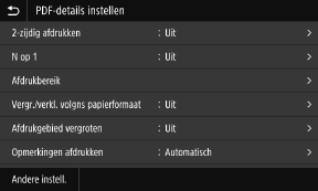 Om het scherm weer te geven, drukt u op [PDF-details instellen] op het scherm Inst. Geheugenmedia Afdrukken.
