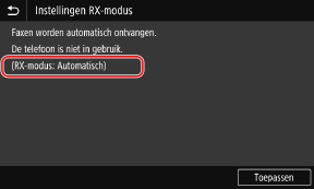 Faxen ontvangenU kunt ook de instelling kiezen om faxen automatisch te ontvangen als het apparaat voor een bepaalde periode heeft geklonken.