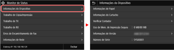 Quando toca no nome ou no botão de um item, pode selecioná-lo. Aparece o ecrã selecionado ou a função selecionada é executada.