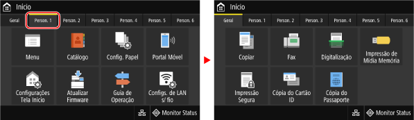 Toque no ecrã e deslize o dedo. O ecrã move-se na direção em que deslizou o dedo. Por exemplo, o ecrã [Início] move-se para o separador na direção em que deslizou o dedo.