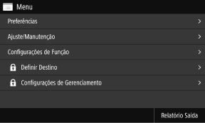 Limpar as definições automaticamentePor predefinição, se não forem realizadas operações após um determinado período de tempo, as definições que estão a ser configuradas no ecrã são limpas e o ecrã [Início] é apresentado. Pode alterar o tempo até as definições serem limpas e o ecrã que é apresentado depois.