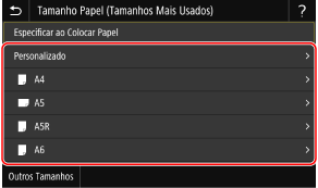 Prima [Outros Tamanhos] e, em seguida, selecione o tamanho de papel na lista apresentada.