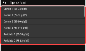 Pode deslocar o ecrã para ver os tamanhos de papel (por exemplo, envelopes) não apresentados no ecrã.