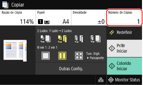 Prima [Número de Cópias], utilize as teclas numéricas para introduzir o número de cópias e prima [Fechar].