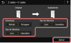 Defina o tipo de abertura e a orientação do original e o tipo de abertura da cópia, conforme necessário.