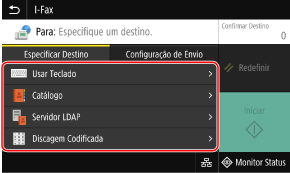 Utilize [Catálogo] ou [Discagem Codificada] para especificar os destinos Cc e Bcc.
