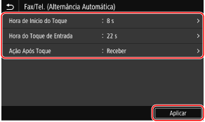 Defina a ação e o tempo de toque ao receber um fax e prima [Aplicar].
