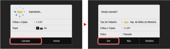 Se for apresentado o ecrã da lista de trabalhos, selecione o trabalho que pretende cancelar e prima [Cancelar] [Sim].