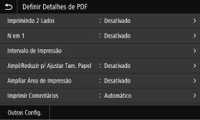 Para ver o ecrã, prima [Definir Detalhes PDF] no ecrã de definições de impressão a partir de suportes de memória.