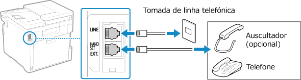 Ligue o cabo telefónico fornecido à tomada de linha telefónica (LINE) na máquina e à tomada de linha telefónica na parede.