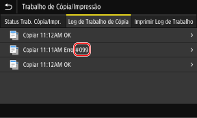 Se não for possível imprimir, se não for possível enviar ou receber dados digitalizados ou um fax ou se ocorrer outro erro, é apresentado um código de erro (número de três dígitos que começa com "#") no relatório ou no registo de trabalhos.