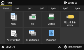 ![]() | [Inställn. hemskärm] Lägg till snabbvalsknappar på skärmen [Hem] och sortera om dem. Anpassa skärmen Hem | |