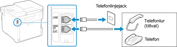 Om du ansluter en telefon med faxfunktion ska du inaktivera automatisk faxmottagning i telefonen.