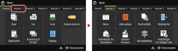 Når du trykker på en fane, vises skærmen for den valgte fane.
