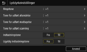 Indstil, om der skal afgives en lyd, når der trykkes på en ugyldig tast, som f.eks. hvis du indtaster en værdi, der er uden for indstillingsområdet.
