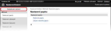 Pro restartování zařízení pomocí vzdáleného uživatelského rozhraní jsou vyžadována oprávnění správce.