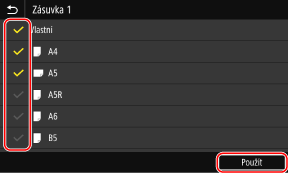 Zrušte zaškrtnutí políček velikostí papíru, které chcete skrýt, a klikněte na tlačítko [Použít].