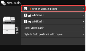 Používáte-li ve víceúčelové přihrádce vždy stejný papír, můžete uložit velikost a typ papíru. Tím zabráníte zobrazení obrazovky nastavení papíru, což vám ušetří potíže s konfigurací nastavení.