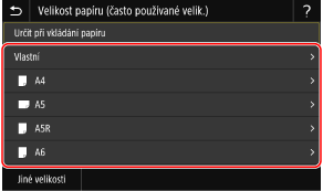 Stiskněte tlačítko [Jiné velikosti] a ze zobrazeného seznamu vyberte formát papíru.