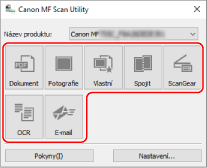 Klikněte na volbu [ScanGear] pro zobrazení ScanGear MF a konfiguraci pokročilých nastavení skenování. Chcete-li získat více informací, kliknutím na tlačítko [