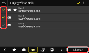 Jelölje be a csoporthoz hozzáadni kívánt címek jelölőnégyzeteit, majd nyomja meg az [Alkalmaz] gombot.