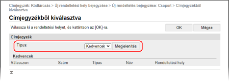 A [Típus] lehetőségnél válassza a [Kedvencek] vagy a [Kódtárcsás] opciót, és kattintson a [Megjelenítés] gombra a címjegyzék megjelenítésének módosításához.
