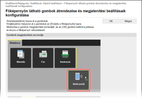 A [Főképernyő] gombjainak átrendezését és a lapok átnevezését számítógépen, a Távoli felhasználói felület használatával végezheti el.