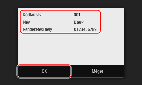 Ellenőrizze, hogy helyesen van-e megadva a cím, majd nyomja meg a [OK] lehetőséget.