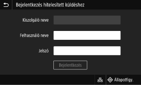 Ha be van állítva a hitelesített küldés (LDAP-kiszolgálós hitelesítés), a beolvasási és faxolási műveletek előtt megjelenik a hitelesített küldés bejelentkezési képernyője. A bejelentkezéshez adja meg az LDAP-kiszolgálóhoz használt felhasználónevet és jelszót.