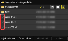 *Egyszerre csak azonos mappában lévő fájlok választhatók ki. Ha a mappát áthelyezi, a fájlkiválasztási folyamat megszakad.