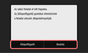 A beolvasott adatok küldési és mentési állapotának és naplójának megtekintéseA [Bezárás] gomb megnyomásakor megjelenik a beolvasási képernyő.