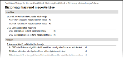 A biztonsági házirend elemeit és azok használatát a Távoli felhasználói felület [Biztonsági házirend megerősítése] képernyőjén ellenőrizheti.
