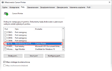 W karcie [Porty]sprawdź, czy zaznaczono pole wyboru [Włącz obsługę dwukierunkową].