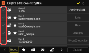 Jeżeli miejsce docelowe w książce adresowej jest określone poprzez „ustawienia ulubione”, operacja edycji lub usuwania ma zastosowanie również do „ustawień ulubionych”. Rejestrowanie i przywoływanie ulubionych ustawień