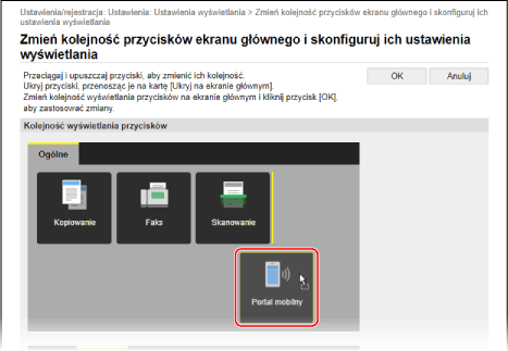 Aby zmienić kolejność przycisków na ekranie [Główny] i zmienić nazwę kart, możesz użyć zdalnego interfejsu użytkownika z komputera.