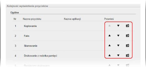 Aby zmienić kolejność wyświetlania przycisków przez ich przeciąganie, kliknij [Edytuj w widoku przycisków].