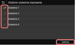 Zaznacz pola wyboru przy ustawieniach, które chcesz przypisać jako przyciski skrótów, a następnie naciśnij [Zastosuj].