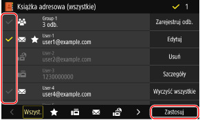 Gdy miejsca docelowe są określone przez wywołanie książki adresowej z poziomu ekranu [Główny], ekran skanowania lub faksu zostanie wyświetlony z wprowadzonymi miejscami docelowymi.