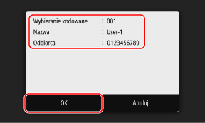 Podczas określania miejsc docelowych na ekranie skanowania lub faksu, oprócz korzystania z listy miejsc docelowych, aby określić miejsce docelowe, możesz również wprowadzić numer wybierania kodowego.