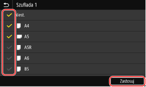 Odznacz pola wyboru rozmiarów papieru, które mają być ukryte, a następnie kliknij [Zastosuj].