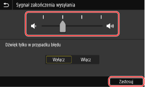 Przeciągnij suwak w lewo lub w prawo, aby wyregulować głośność, a następnie naciśnij [Zastosuj].