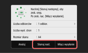 Gdy skanowanie wszystkich dokumentów zostanie zakończone naciśnij [Włącz wysyłanie] lub [Podgląd i wyślij].