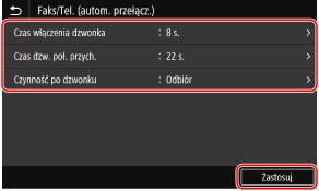 Gdy włączony jest [Faks/Tel. (autom. przełącz.)] w celu określenia, czy połączenie przychodzące jest faksem, możesz również skonfigurować takie ustawienia, jak czas dzwonienia.