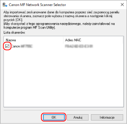 Zaznacz pole wyboru dla urządzenia, a następnie kliknij [OK].
