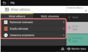 Jeśli miejsce docelowe podczas wysyłania jest ograniczone ze względu na ustawienia uwierzytelniania dla funkcji wysyłania, nie można określić innego miejsca docelowego. W celu uzyskania szczegółowych informacji skontaktuj się z administratorem.