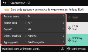 Gdy pojawi się ekran obsługi nośnika pamięci, naciśnij [Skanowanie USB], a następnie przejdź do kroku 5.