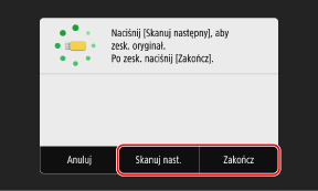 Aby kontynuować skanowanie oryginałów, umieść je na szybie ekspozycyjnej i naciśnij [Skanuj nast.].