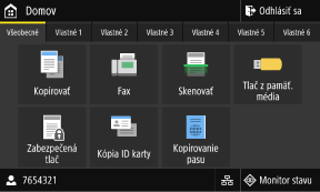 ] na ovládacom paneli. Predvolene sa obrazovka [Domov] zobrazí po zapnutí napájania a ihneď po zatvorení obrazovky spúšťania a po prihlásení. Obrazovka [Domov]