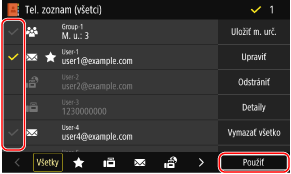 Keď sú miesta určenia špecifikované vyvolaním telefónneho zoznamu z obrazovky [Domov], zobrazí sa obrazovka skenovania alebo faxovania so zadanými miestami určenia.