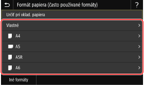 Keď je papier vložený s orientáciou na šírku, vyberte položku [A5]. Keď je papier vložený s orientáciou na výšku, vyberte položku [A5R].